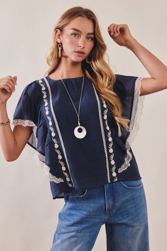 The Lace Trimmed Embroidered Top