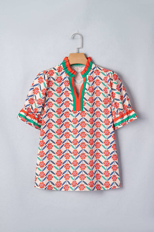Lindsay Floral Collar Detail V Neck Top