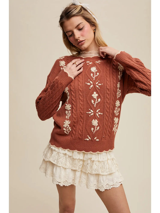 Chelsea Scallop Trim Cable Knit Half-Zip Sweater