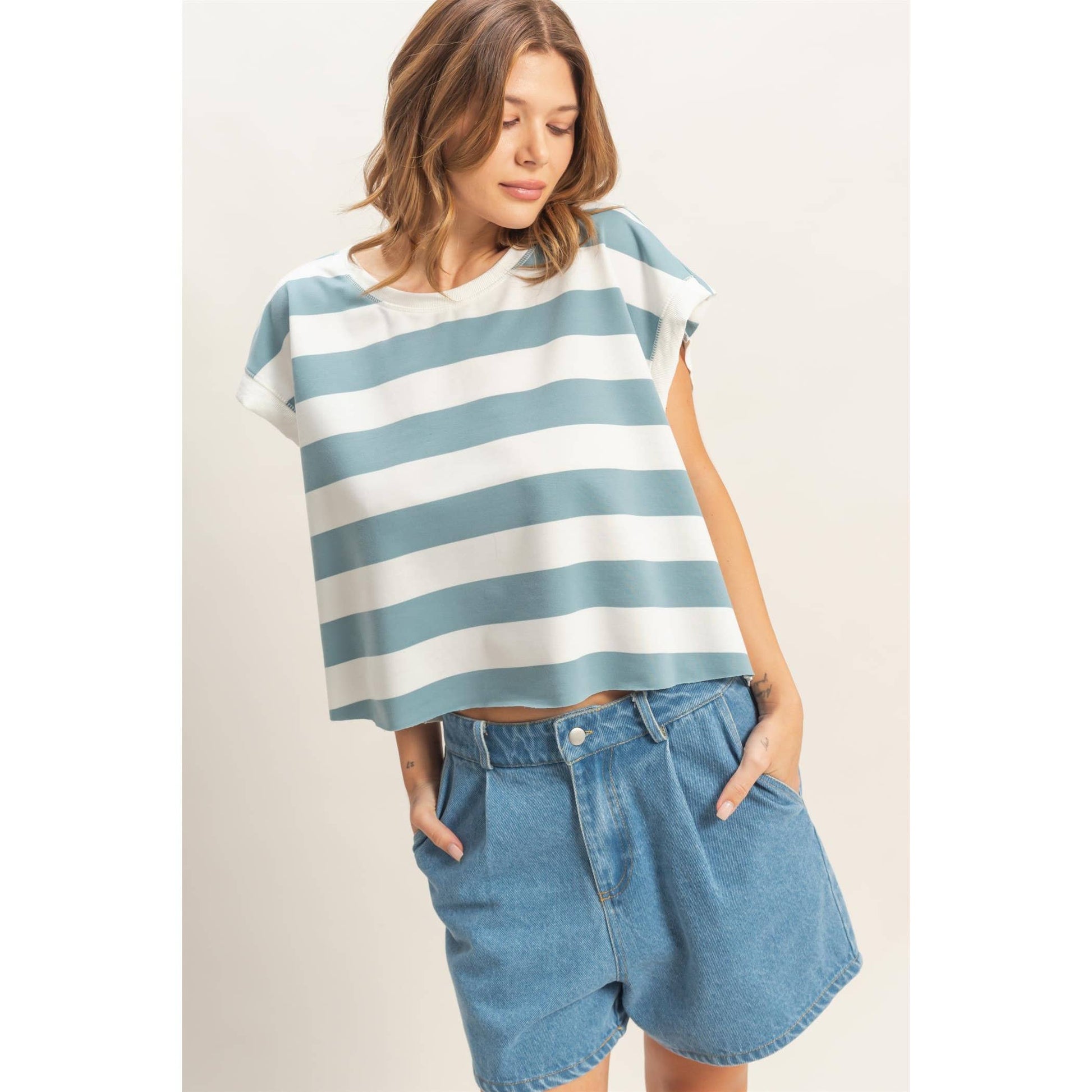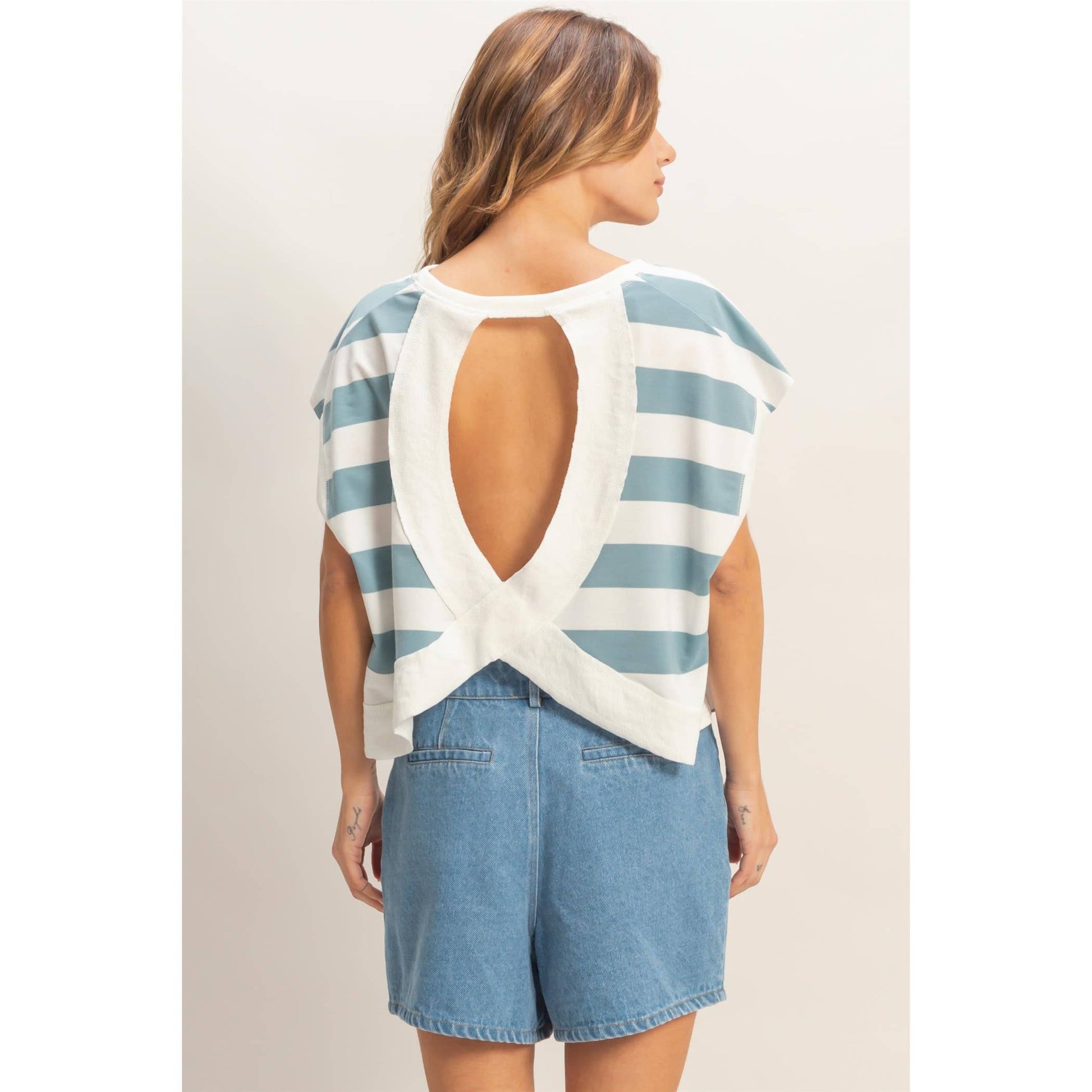 Meet your new go-to: a striped boxy tee that's all about that relaxed vibe. The crew neckline keeps it classic, while the surprise open back detail gives you that "I planned this" moment. Comfy sleeves, bold stripes, and just enough edge to make it interesting.